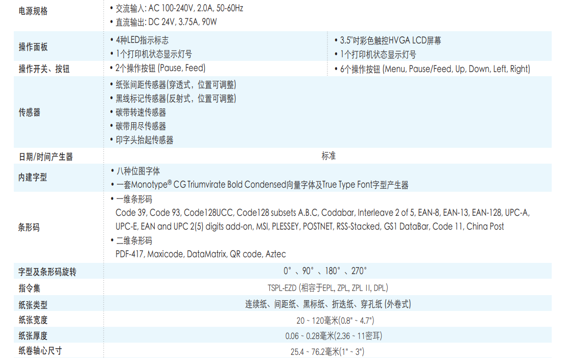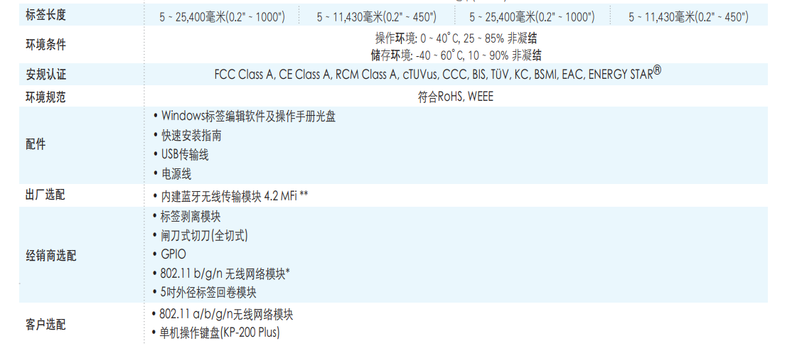 選配包含: 卷標(biāo)剝離模塊、5吋外徑卷標(biāo)回卷模塊、GPIO、內(nèi)建式藍(lán)牙、802.11 a/b/g/n無線網(wǎng)絡(luò)模塊、一般切刀