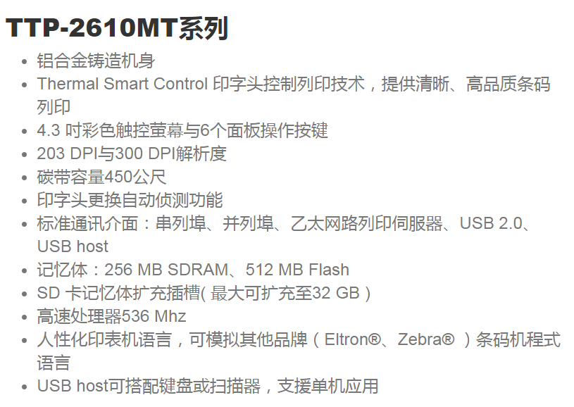 TSC TTP-2610MT系列 打印機(jī)