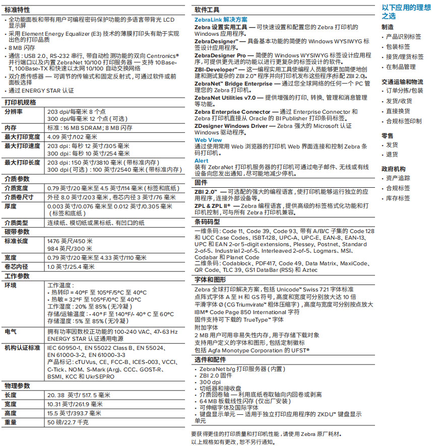 105SLPlus充分利用Zebra經(jīng)實踐驗證的電子平臺,可滿足大批量應(yīng)用的需要——包括大容量存儲以存儲格式、字體和圖形。Element Energy Equalizer? (E3?) 技術(shù)能夠延長打印頭的壽命并提供出色的打印品質(zhì)。105SLPlus采用全金屬結(jié)構(gòu),具備Zebra享有盛譽的出色耐用性,可承受制造和倉儲環(huán)境中常見的碰撞。這款打印機專為全天候使用而設(shè)計,