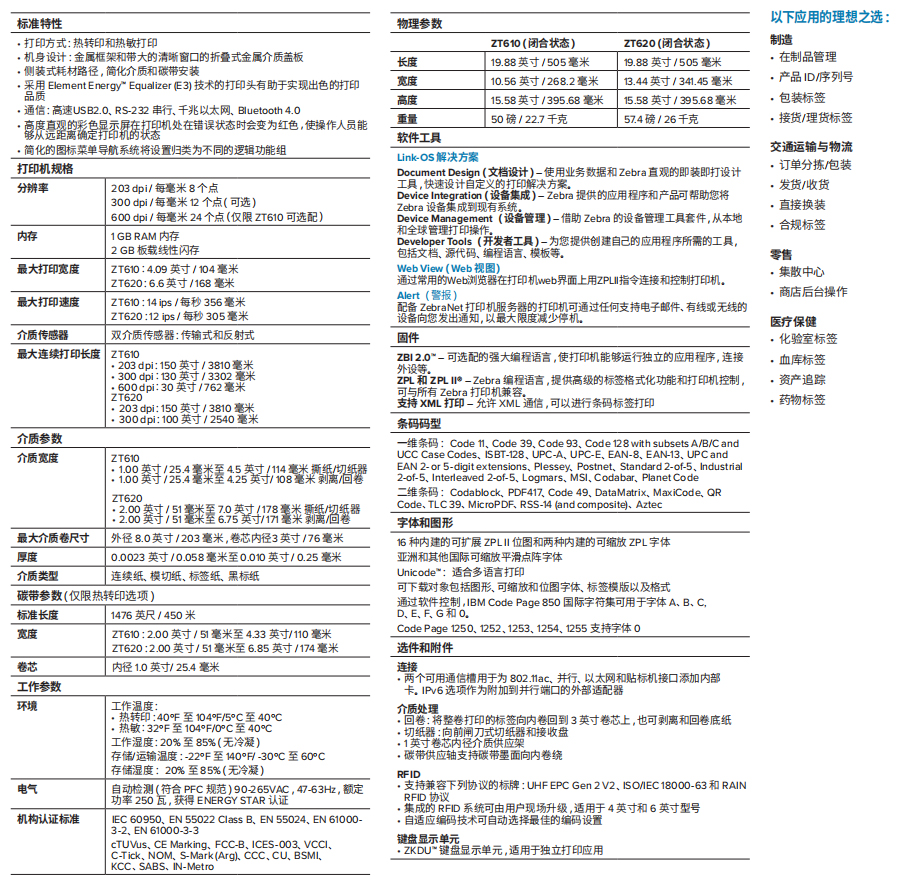 Zebra的工業(yè)打印機(jī)以其出色的耐用性、超快的打印速度、長使用壽命以及的可靠性聞名于世。ZT610 和 ZT620 以這些傳統(tǒng)優(yōu)勢為基礎(chǔ)構(gòu)建而成,具備 Zebra工業(yè)打印機(jī)系列全面的先進(jìn)特性。為了在廣泛的應(yīng)用中確保關(guān)鍵運(yùn)營順暢運(yùn)轉(zhuǎn),ZT600系列打印機(jī)可提供: